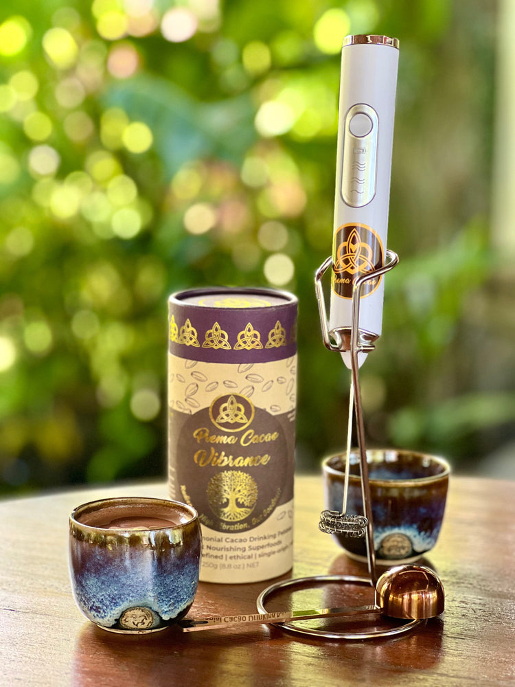 Discover the perfect cacao ritual with Prema Cacao's Ceremonial Self Love Bundles or Gift Packs . Our packs include premium ceremonial-grade cacao, traditional cups, a specialised cacao whisk, and a measuring spoon. Craft delicious, frothy cacao blends effortlessly.